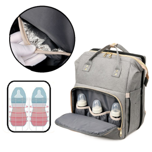 Prémium pelenkázó táska – vízálló, többrekeszes baba-mama táska minőségi szövetből, utazáshoz és mindennapi használatra (FX) (BLLV)
