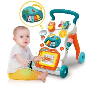 Multifunkciós, zenélő, járássegítő játék kivehető babazongorával, rajztáblával és játék telefonnal vidám színekben (BBJ)