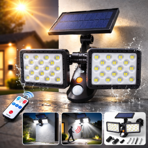Nexolux napelemes LED fali lámpa – 5 fejes, 300 COB LED-es kültéri biztonsági lámpa mozgásérzékelővel (BBV)