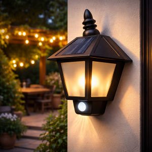 SolarGlow napelemes LED kültéri fali lámpa mozgásérzékelővel – vízálló kerti lámpa meleg fehér fénnyel, vintage hatszög dizájn (BBV)