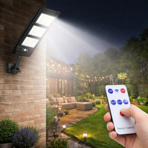 W7101A-4 nagy fényerejű mozgásérzékelő, távirányítós napelemes falilámpa – 210 W (BBD)
