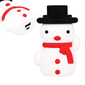 Kalapos hóember power bank – 2600 mAh mini külső akkumulátor, hordozható telefontöltő karácsonyi designnal (FX) (BLLV)