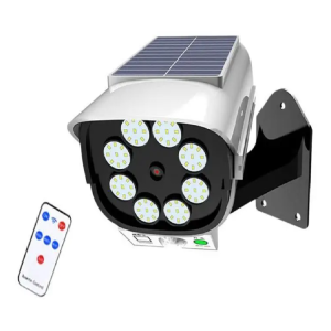 Kültéri solar napelemes mozgásérzékelős 77 LED-es lámpa és álkamera táviránytóval QG-T08 (BBL)