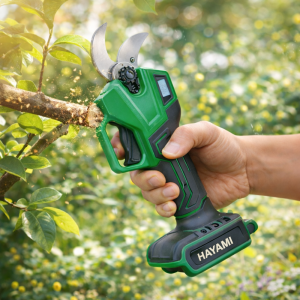 HAYAMI HA-1040 akkumulátoros ágvágó metszőolló – elektromos kerti metszőolló 2 akkumulátorral és hordtáskával, zöld (BBV)