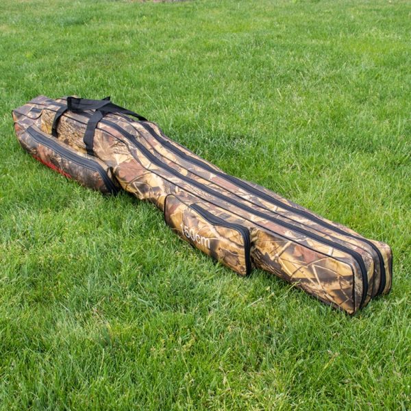 A kettő különálló fakk, külön-külön cipzárral zárható. A botzsák szakszerű kialakításának köszönhetően nem szükséges az orsókat leszedni, így a botokat orsóval szerelt állapotban, biztonságosan tudjuk szállítani.