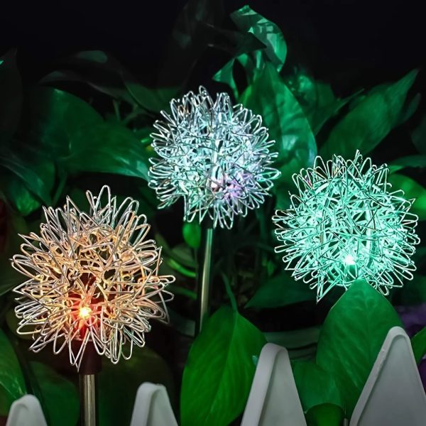 2 db színes pitypang hatású napelemes kerti lámpa – földbe szúrható, alumínium drótgömb design (BBD)