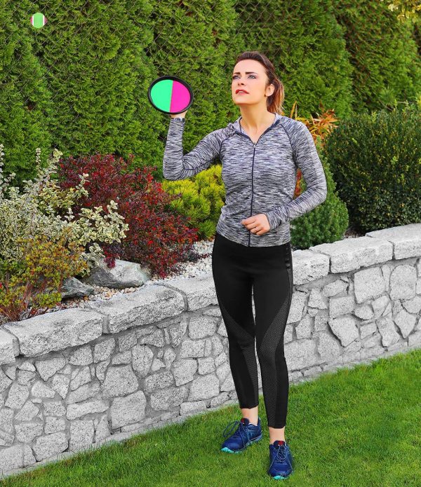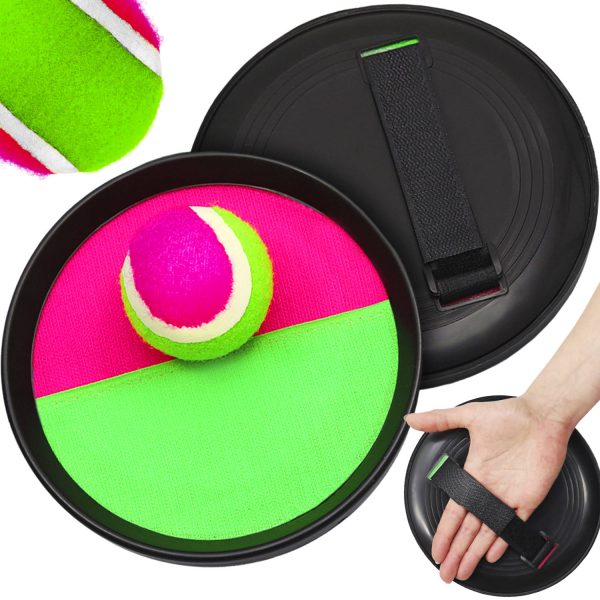 Játékkészletünk fantasztikus lehetőség gyermekeknek és felnőtteknek is egyaránt. Nagyon szórakoztató és elűzi az unalmat. Szettünk két tárcsát tartalmaz állítható tépőzáras pántokkal, így a korongok egyedileg állíthatók és használhatók. A mellékelt labda tépőzár funkcióval rendelkezik. A színes készlet remek szórakozást nyújt minden játékos számára nemtől és kortól függetlenül. A gazdag, neon színek szemet gyönyörködtetnek és felhívják magukra a figyelmet, a labda és korongok mindig szem előtt vannak.