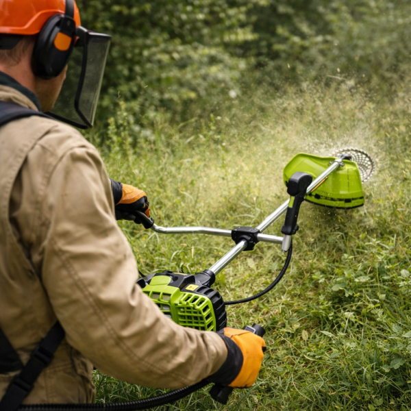 A nagy teljesítményű benzinmotor könnyedén megbirkózik a sűrű növényzettel is.