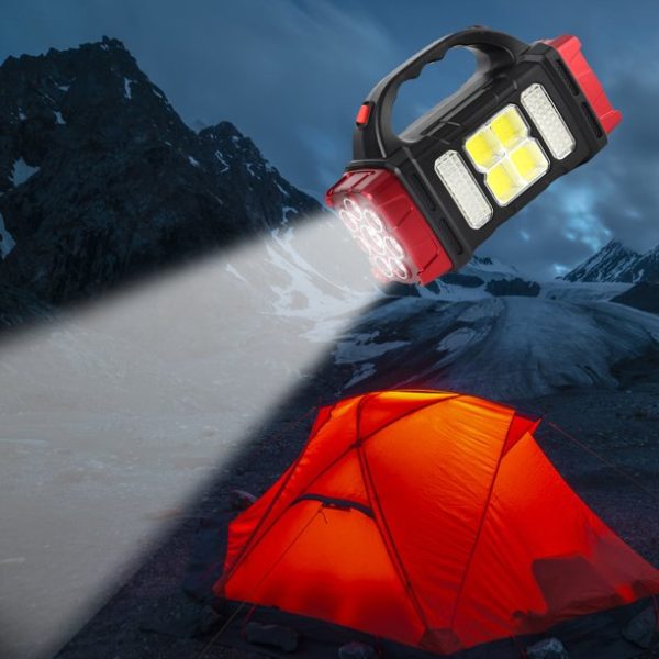 A napelemes lámpa és powerbank az egyik legjobb dolog, amit magaddal vihetsz, ha kempingezni mész, vagy bármilyen kültéri tevékenységet végzel. Az extra erős fényerejű lámpa minden szükséges helyzetben hasznos lehet. A lámpa 8 nagy hatótávolságú fehér és sárga LED-del van felszerelve, valamint oldalán 6 LED panel is található, így összesen 108 COB LED-el világít, amelyekkel széles körű megvilágítást tudsz biztosítani a sötétben.