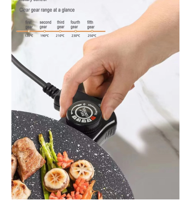 A grill beépített hőfokszabályzóval rendelkezik, így könnyedén beállíthatod az ideális hőmérsékletet az elkészítendő ételekhez.