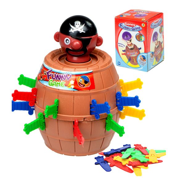 A játék egyszerű és izgalmas szabályai gyorsan magával ragadják a családot. Tedd a kalózt a hordóba úgy, hogy a feje kilógjon a tetejéről, majd forgasd meg többször. Minden játékos kap egy kardot, és felváltva szúrja bele a hordóba, anélkül, hogy a kalózt megsértené. De vigyázz, ha rosszul sikerül, a kalóz úgy lő ki a hordóból, mint egy csúzli! A nyertes az lesz, aki a legtöbb kardot szúrja bele a hordóba, mielőtt a kalóz kiugrik.