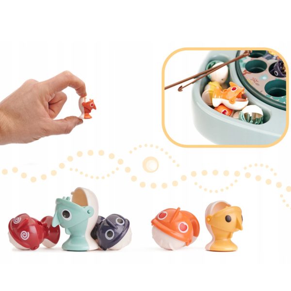 Készségfejlesztő asztali társasjáték gyerekeknek – horgászos játék mágneses pecabotokkal, forgó táblával és 24 kifogható halacskával (BBJ)