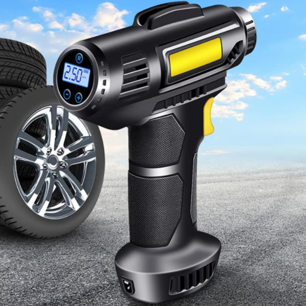 Kompakt digitális akkumulátoros autókompresszor – 10 bar nyomás, 72W motor, LED lámpával és 18 liter/perc levegőkapacitás (FX) (BBJH)