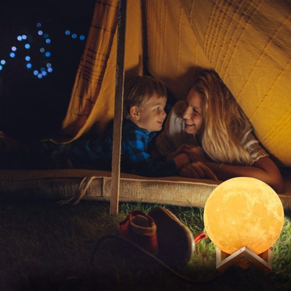 Kiváló dekorációs lámpa, amely a Hold felszínére emlékeztető sötétebb foltokkal tarkított felülettel rendelkezik. A belsejében lévő melegfehér LED nagy fényerővel világít, melynek energiaellátásáról beépített akkumulátor gondoskodik. A tartozékként kapott, modern megjelenésű fa talpnak köszönhetően igazán egyedi dekorációs eszköz. Használható akár irányfényként is hálószobában, nappaliban közlekedő helyiségekben. Az akkumulátor a tartozékként kapott USB kábel segítségével tölthető fel.