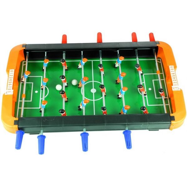 A praktikus foganytyúk jól illeszkednek a kézbe. A narancssárga és fekete állványok védik a pályát, így a labda nem esik túl a focipálya határain. Mindkét kapu felett egy csúszó számláló található, ami megkönnyíti mindkét csapat pontjainak számon tartását.