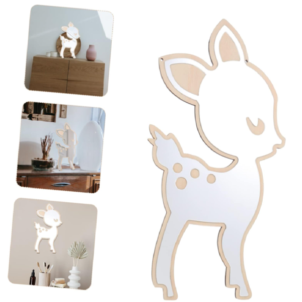 Őzike formájú gyerekszoba fali tükör – aranyos dekoráció babaszobába és gyerekszobába (FX) (BLLV)