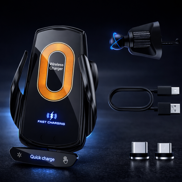 💡 Töltés és stabil rögzítés egyben – vezetés közben is maximális kényelem! A V57 autós vezeték nélküli telefontartó modern megoldást kínál minden autós számára: automatikus rögzítés, gyors Qi töltés és 360°-os állíthatóság egy kompakt, prémium kivitelben. 📱✨