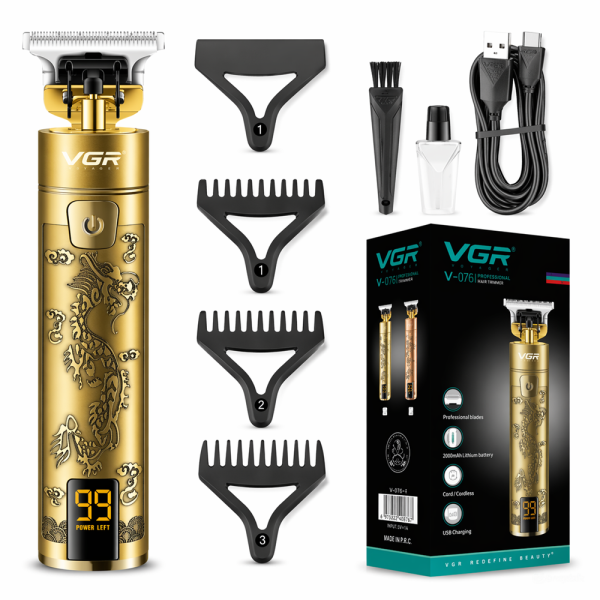 VGR-V076 LED kijelzős gravírozott hajnyíró titánium pengével és cserélhető fejekkel (BBV)